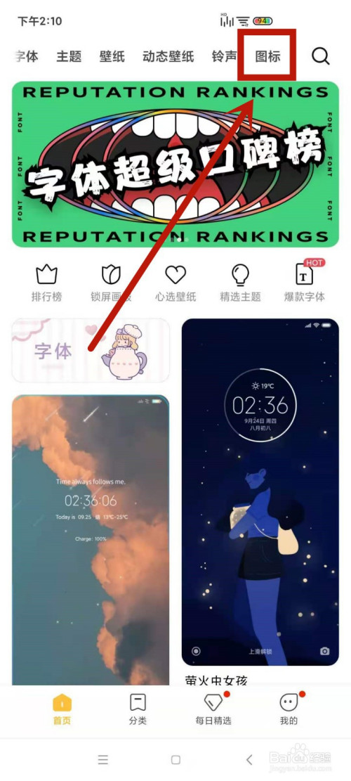 1.打开本家儿题壁纸,点击上方的图标。