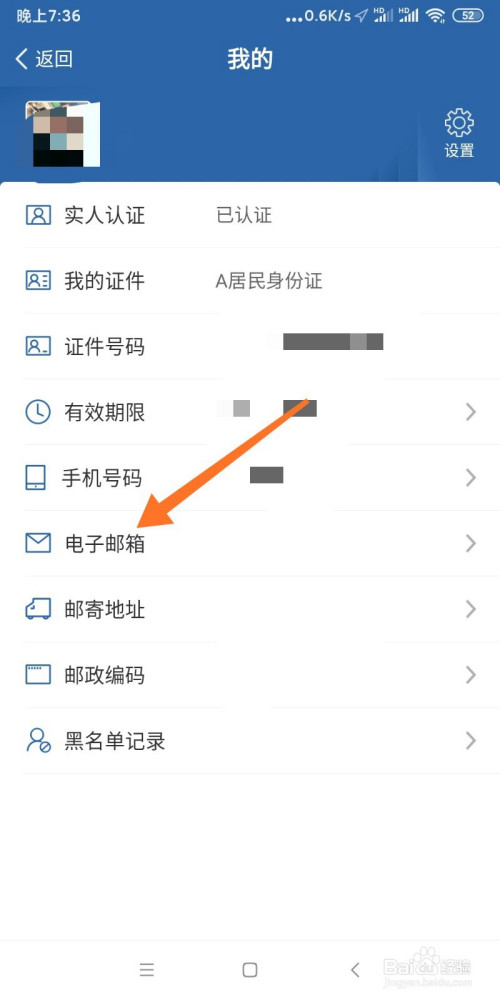 绑定当作功后界面显示电子邮箱。