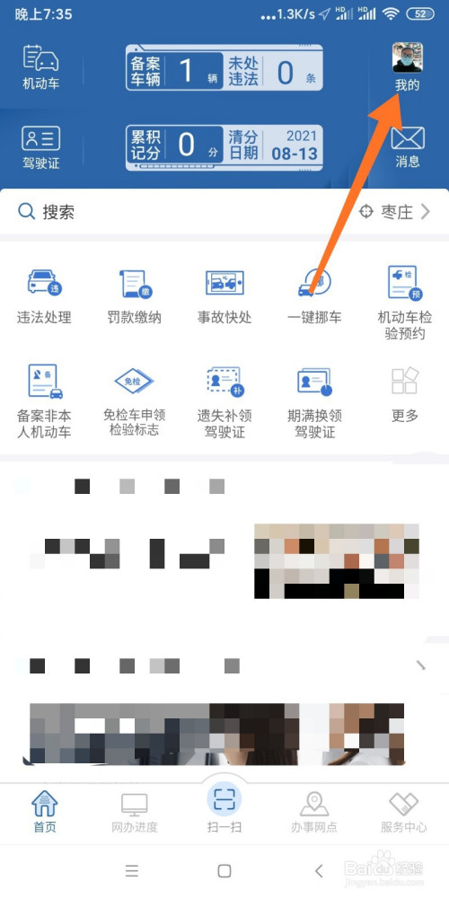 登录交管12123点击【我的】按钮。
