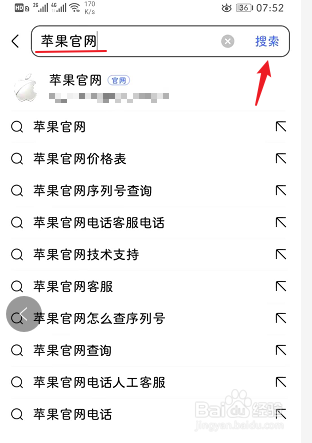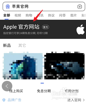 在搜刮栏输入苹果官网,再趣鬼点击”搜刮“。