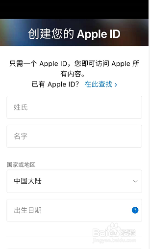 滑动到最下端,点匠罪击”建立您的Apple ID“。