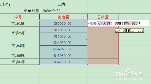 在乞降单位和输入sum函数。