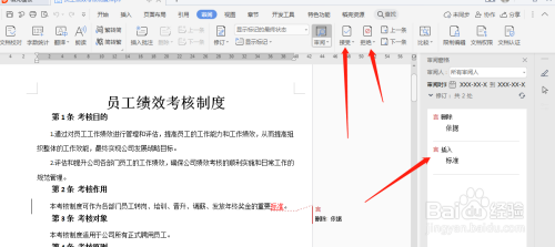 点泪闲击垂直核阅窗格,查看修订文档的内容。