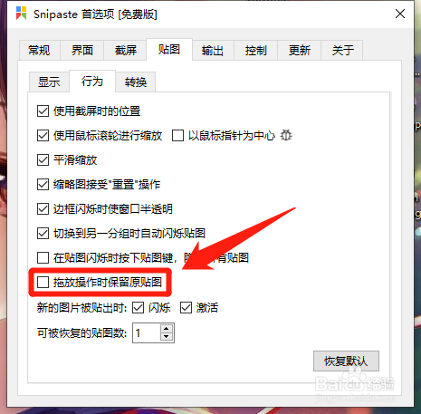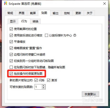 在“行为”菜单项中,勾选“拖放操作时保留原贴图”选项的勾选开关。