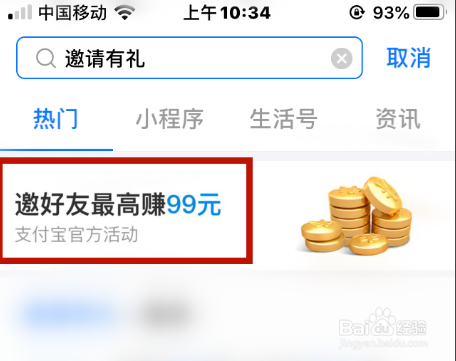 在搜索框中【输入邀请有礼】