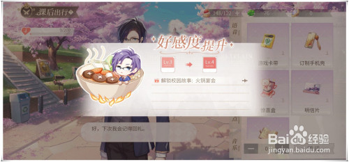 刚入坑的游戏新手临时不建议增添人物好感度,先不竭过剧情晋升小我品级,因为校园、笔记、社交都是需要达到必然品级之后才会开放利用;出行页面的当前人物好感度达到品级才能解锁切换人物。