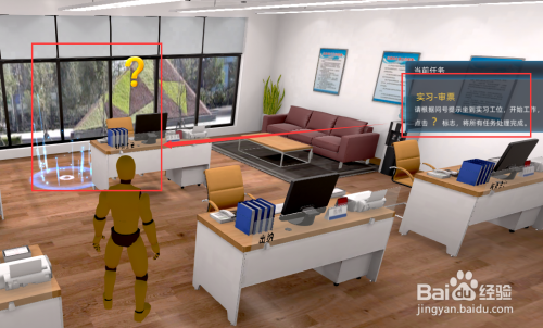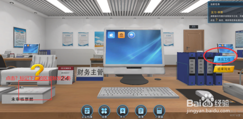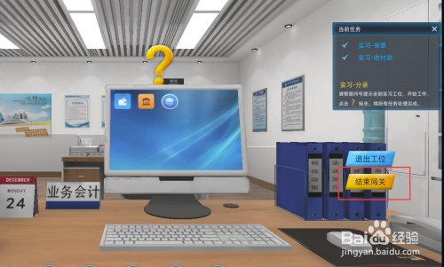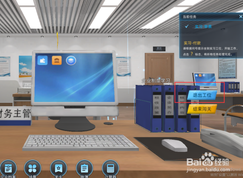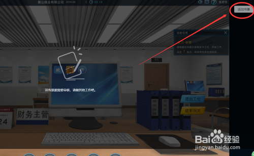 回到工位后,找了下工位上没有问号标识表记标帜,这申明这个岗亭已经没有工作了哦,所以我们要退出工位,回到财政室场景来寻找下一次的工作。