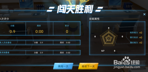 按照上面的方式,继续寻找其他使命,做完全数练习使命后,点击竣事闯关。