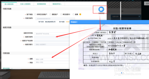 按照指引继续,来到付条目页面。点击右边的单据图标,打开申请单和凭证,对照着录入到付条目中。