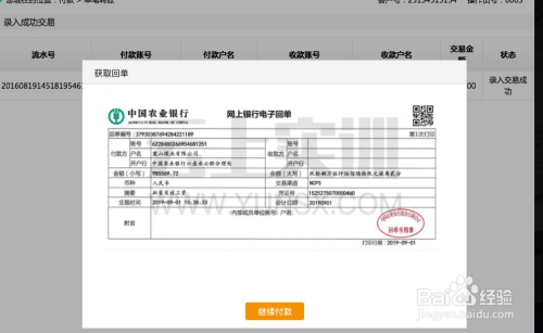 发现有个小问号在付条目图标上,这申明此次的工作是网银转账付条目,点击付条目图标
