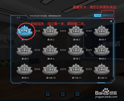 3. 关卡:该公司中的所有工作,经由过程闯关的体例,来达到练习的目标。