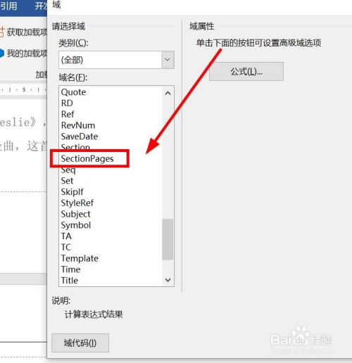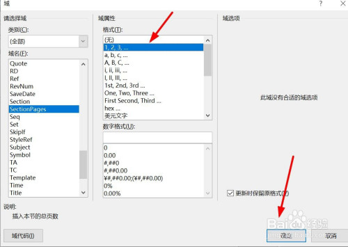 找到点击sectionpages,选择1,2,3,····格局。点击确定。【备注sectionpages暗示统计当前节的总页数】。