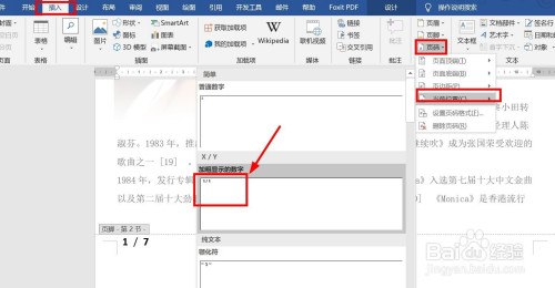 页码显示出来后,当前页码从文档的第二页起头显示。可是总页数也要改为第2节所有的页数,所以这里要把总页码7改为6,设置如下: