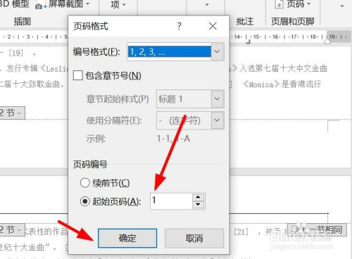 点击“插入”——“页码”——“设置页码格局”,选“肇端页码”为1。点击确定。