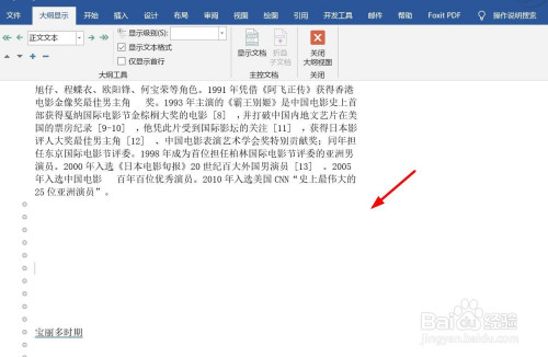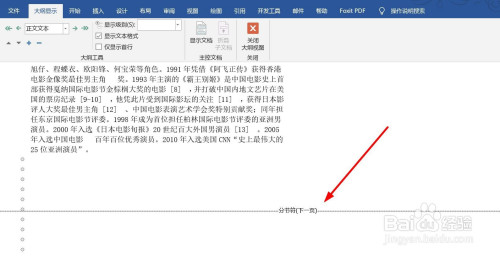 文档以纲领形式显示,可以看到分节符。