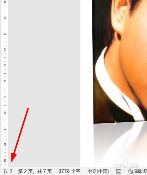 打开word文档,如图所示,这里文档分了2节,要使2节酿成1节,操作如下: