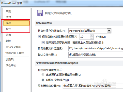在【PowerPoint选项】对话框里点击【保留】;