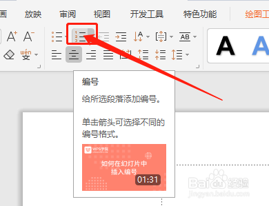 在功能区点击“编号”按钮。如图:蚂蚂侮