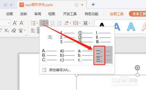2.鄙人侧功能区“编号”中,点击选择“中文”序列项目编号即可。