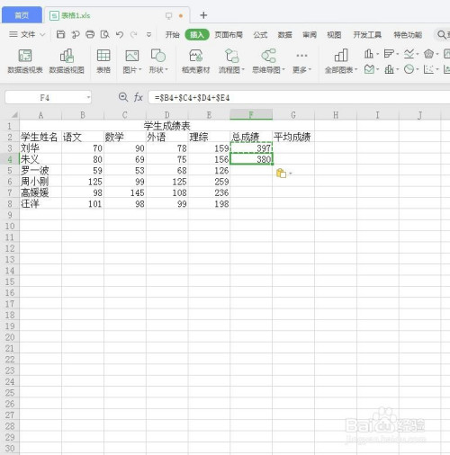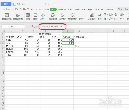 选中F4单位格。如下图所示