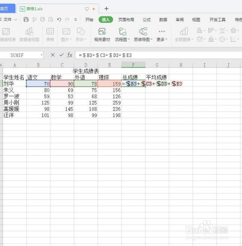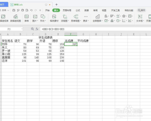 在F3单位沟荡边格输入公式“=$B3+$C3+$D3+$E3”。如下图所示