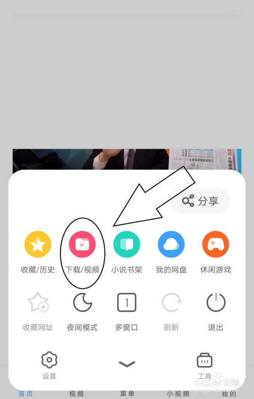 2.下方的功能栏中找到下载/视频。