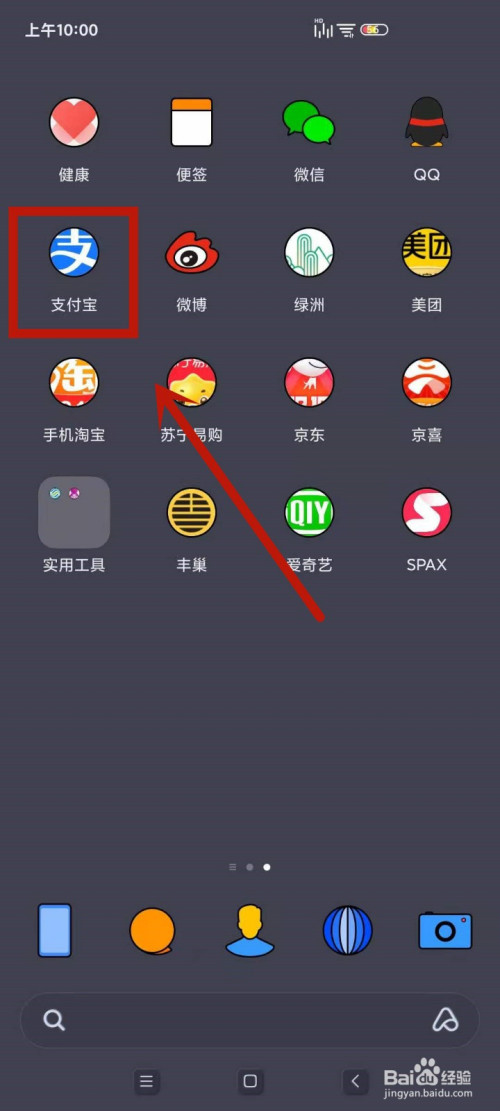 叫醒手阅良机系统后,点击进入支付宝App。