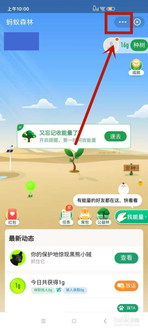 在蚂蚁丛林页面,点击进入右上角的 ... 小标。