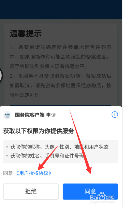 点击赞成授权选项,起头跨省异地就医存案即可。