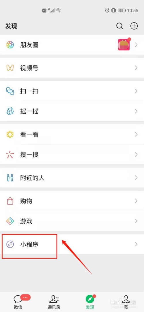打开微信app,进入“发现-小程序”。