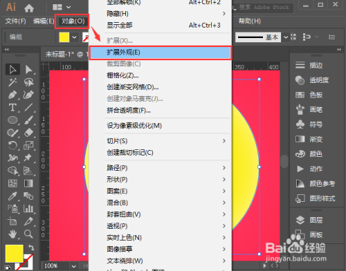 我们点击【对象】选择【拓展外不雅】,如图所示况政。