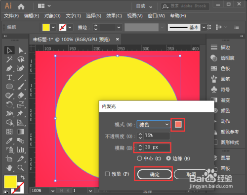 我们调整廊速内发光的颜色和恍惚参数,点击【确定】,如图所示。