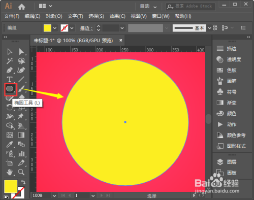 我们用【椭圆东西】画出一个大圆形(填充什么颜色都是可以的,因为后面是需要删除失落的),如图所示。
