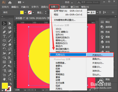 接着,我们选中大圆形,点击【结果】-【气概化】选择【内发光】,如图所示。