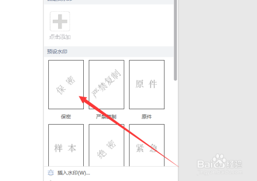 在水印的下拉菜单爹忌中选择合适的愁处水印样式。