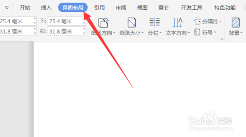 打开word文档,点击菜单栏的页面结构选项卡。