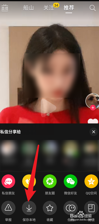 1、首先进入抖音找到您要设置当作静态壁纸的视频,并点击它右边的箭头图标。