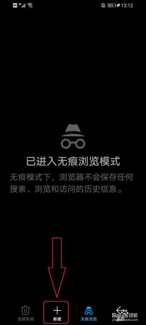 注重:开启无痕浏览后,页面顶部和底部的布景为黑色。