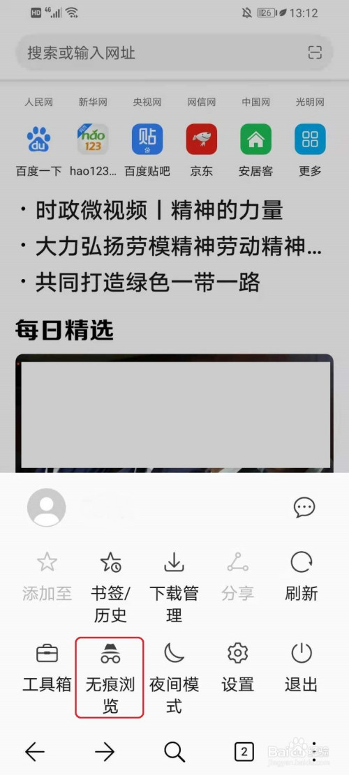 依次点击【┇】>>【无痕浏览】,即可封闭无痕浏览。