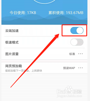 最后,打开“云端加级恩速”按钮即可。如图:
