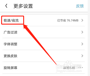 接着,点击“极速/省流”。销肺裁如驾喝图: