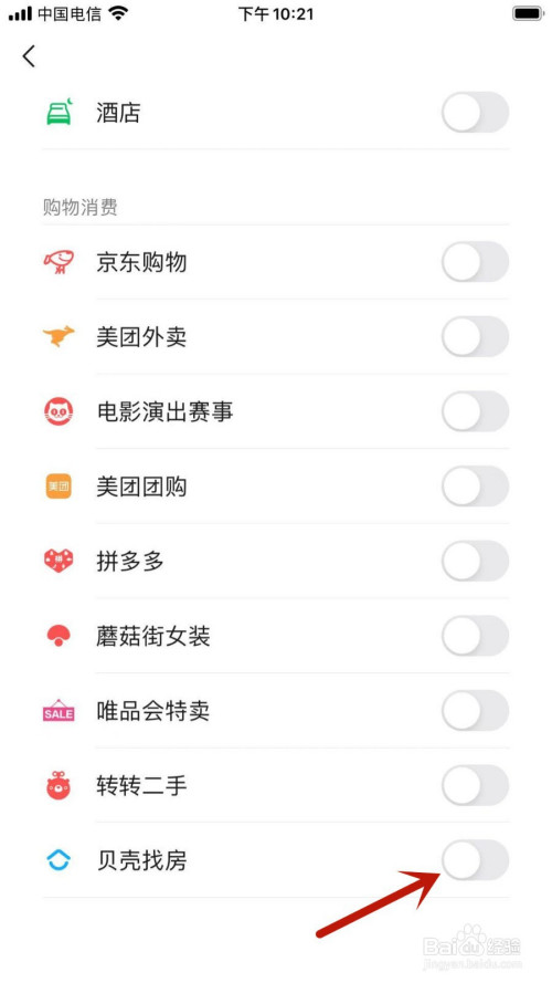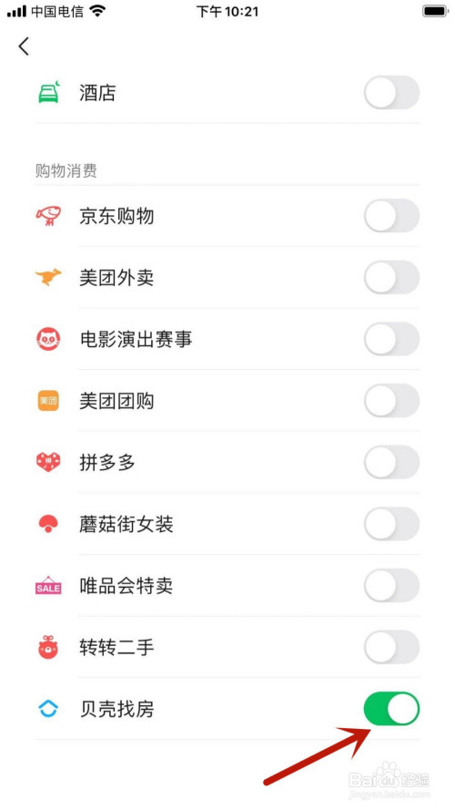 跳转新页面后,查找并点击【贝壳找房】右低施此侧按钮救匠,按钮变暗就当作功埋没了。