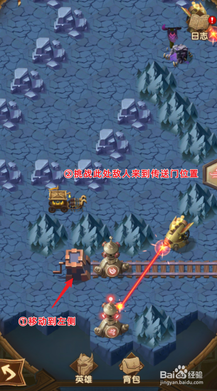 挑战后,再次经由过程传送门传送下方,将左侧的轨道,移动到最右侧,经由过程传送门传送到上方。
