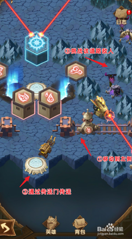 之后,将右侧的轨道移动到左侧,经由过程传送门传送到上方后,挑战右侧道路的仇敌。