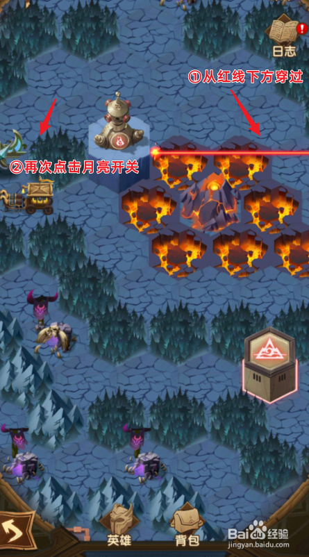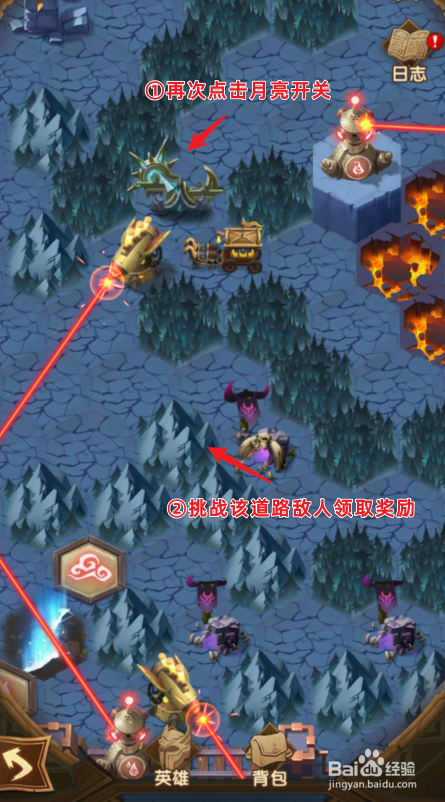 再次点击月亮开关,挑战下方道路的仇敌,领取奖励。