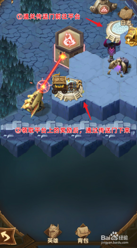 点击后,来到下方经由过程传送门传送到平台上,挑战仇敌领取奖励后,经由过程传送门下来。