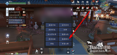 在骑马状况下点击邀请的人。