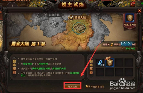第三步,选择勇者大陆第一章,点击“进入挑战”