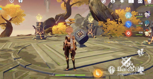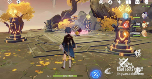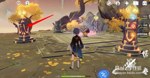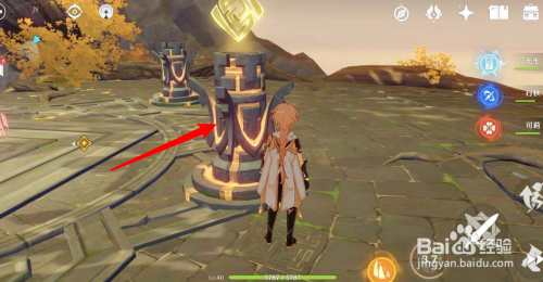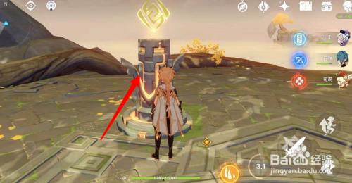2、进入秘境今后,面临石柱先去点亮右上角的岩石柱。