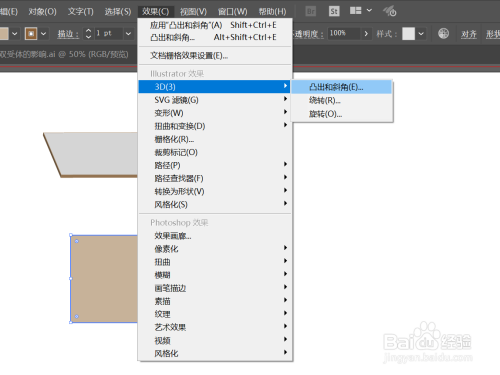 选中该图案,依次点击【结果】-【3D】-【凸出和斜角】;